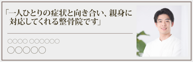 • 口コミ○○件以上!○○市○○区で人気の整骨院